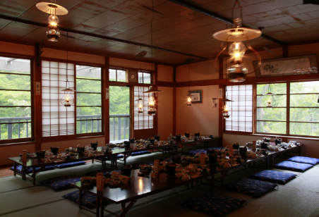 朝夕の食事はここ大広間で