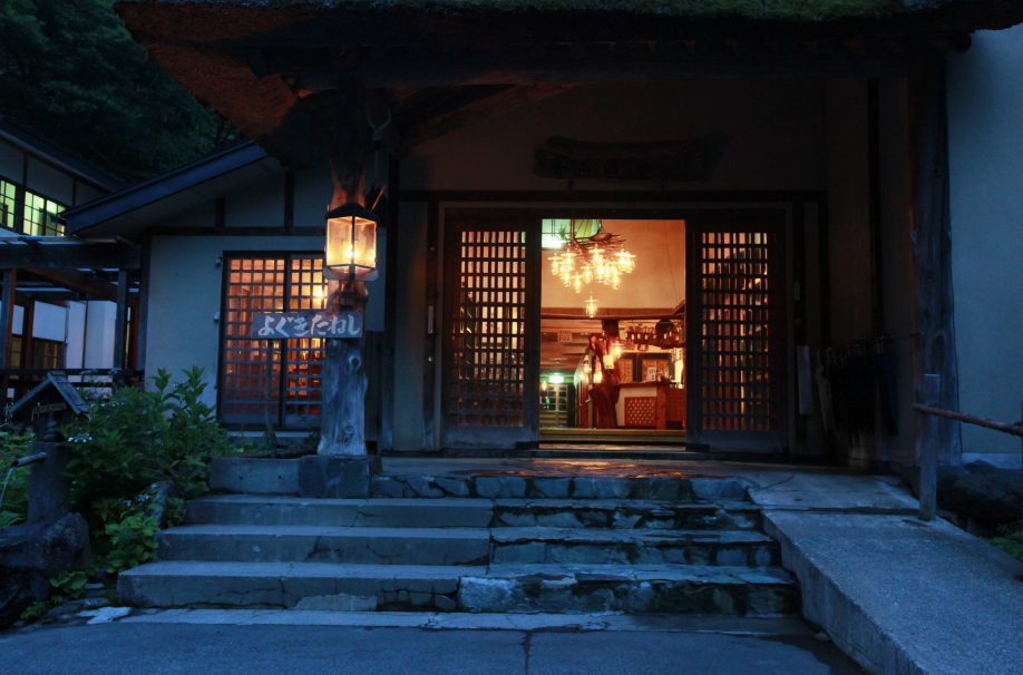 山道を抜け、ランプが灯る玄関へ