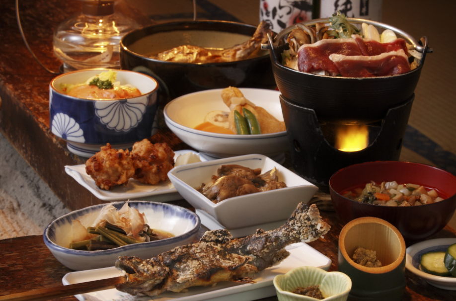 囲炉裏を囲む田舎料理