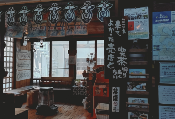 喫茶スペースで他の旅人と